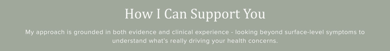 I work with women and couples who have been navigating ongoing health or fertility concerns without clear answers, using evidence-based practice and clinical experience to explore underlying drivers and support meaningful, long-term change.